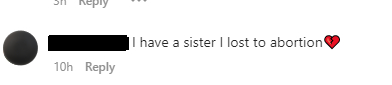 Live Action’s post evoked many emotions and thoughts as the truth of abortion was exposed. Some Instagram users even shared the pain and heartbreak they have experienced as they’ve learned of the family members they’ve lost to abortion.