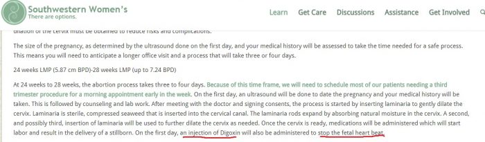 Late Term abortion clinic uses Digoxin to stop heartbeat