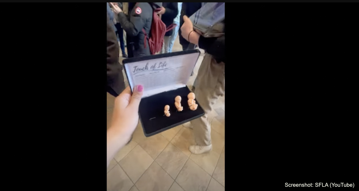 Students for Life of America (SFLA) Northeast Field Operations Coordinator Savannah Craven brought the Human Rights Tabletop to the university to educate students on abortion, and at first, the display went well. “Our morning started out beautifully as we had conversations with both sides of the aisle of the abortion issue,” Craven wrote in a blog post for SFLA. “However, it slowly turned into an angry pro-abortion mob that had as little respect for us as they do for the preborn.”