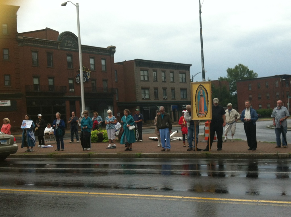I drove to a Catholic church, where I met some brave warriors for life. We walked to the abortion clinic in a line, praying with every step we took. An elderly man led the march carrying a large wooden cross. As we passed through the inner-city streets, strangers stared, smiled…and one even screamed, “My name is Gail! Pray for me!” When we arrived, most of the group stood across the street praying, while a few of us stood on the sidewalk near the clinic entrance. Since it was my first time there, a sidewalk counselor told me she would do the talking and I could pray.