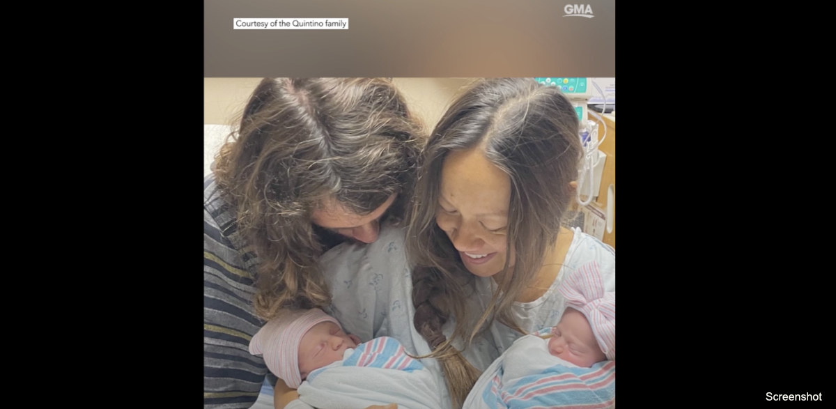 “I actually made it to week 39 with the twins and we were at our Friday morning ultrasound and the amniotic fluid was low for baby A, which is the boy, and at that point, his movements were really slow and we got pretty worried about it,” Sara McGuigan Quintino told Good Morning America. “So we went directly from the ultrasound to the hospital to induce labor.”