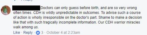 Other mothers were stumped by the fact that Miller was told to abort, saying that they were not advised to abort and that Miller should have gone for a second opinion. Many felt that she was misled by doctors who don’t know enough about CDH. This is a huge problem in the OB/GYN community. These doctors cannot be and should not be expected to be experts in every prenatal diagnosis. Too many parents are pressured to abort by doctors who don’t have a full understanding of the child’s diagnosis.